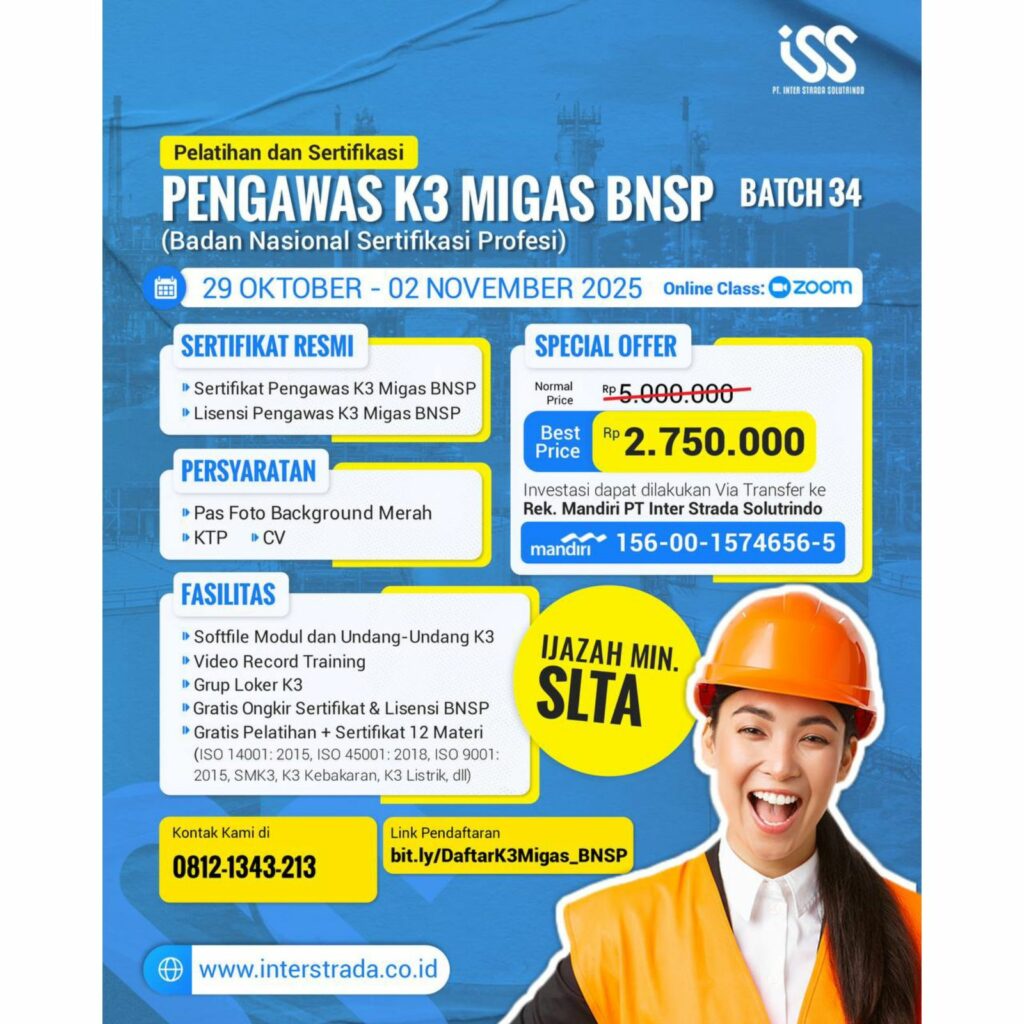 2. Sertifikasi Pengawas K3 Migas BNSP [29 Oktober – 02 November 2025]