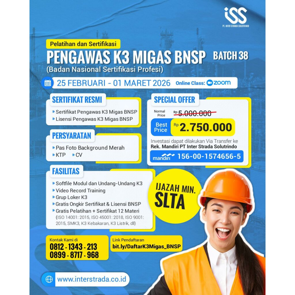 2. Sertifikasi Pengawas K3 Migas BNSP [25 Februari – 01 Maret 2026]