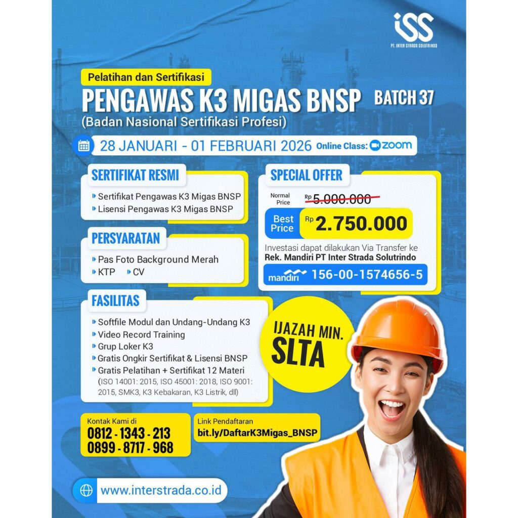 2. Sertifikasi Pengawas K3 Migas BNSP [28 Januari – 01 Februari 2026]