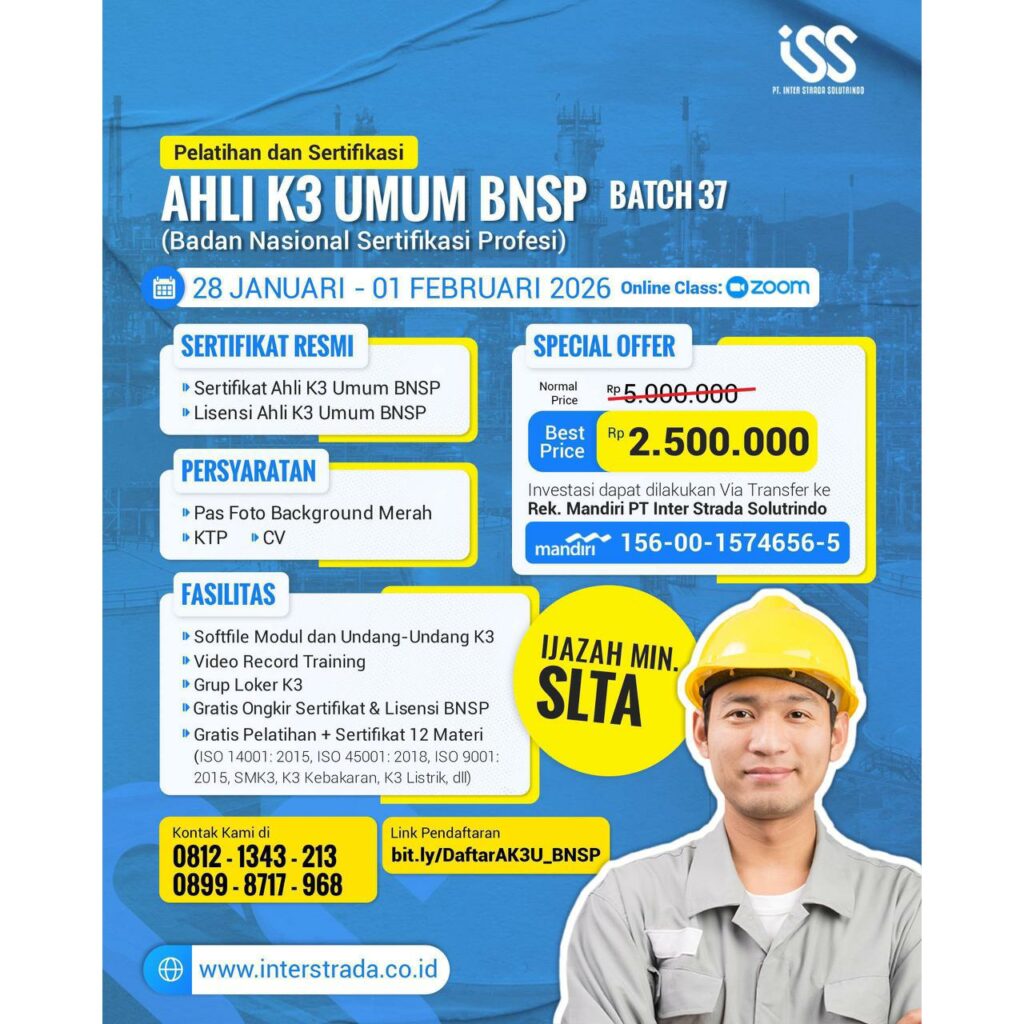 1. Sertifikasi Ahli K3 Umum BNSP [28 Januari – 01 Februari 2026]