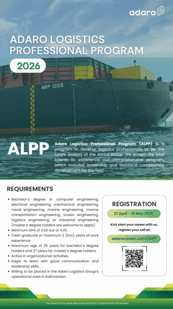 As a growing energy company, PT Adaro Andalan Indonesia Tbk periodically opens the latest career opportunities through the Adaro Logistics Professional Program (ALPP) 2026. Check out the complete information below regarding the available positions and recruitment requirements.
